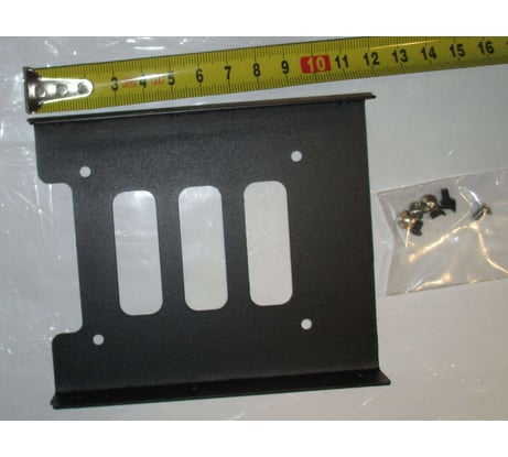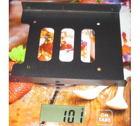 Отличный металлический держатель-переходник для 2,5"устройства в 3,5"отсек корпуса десктопа. Корпус девайса стальной, магнитится, сверху покрыт прочным анодированным покрытием. Размеры и отверстия крепления стандартные. В переходник отлично встаёт стандартный 2,5"жесткий диск, а металл переходника обеспечивает дополнительное охлаждение жесткого диска. Измеренная масса переходника 101 грамм, измеренные габариты можно увидеть на приложенных фотографиях.
