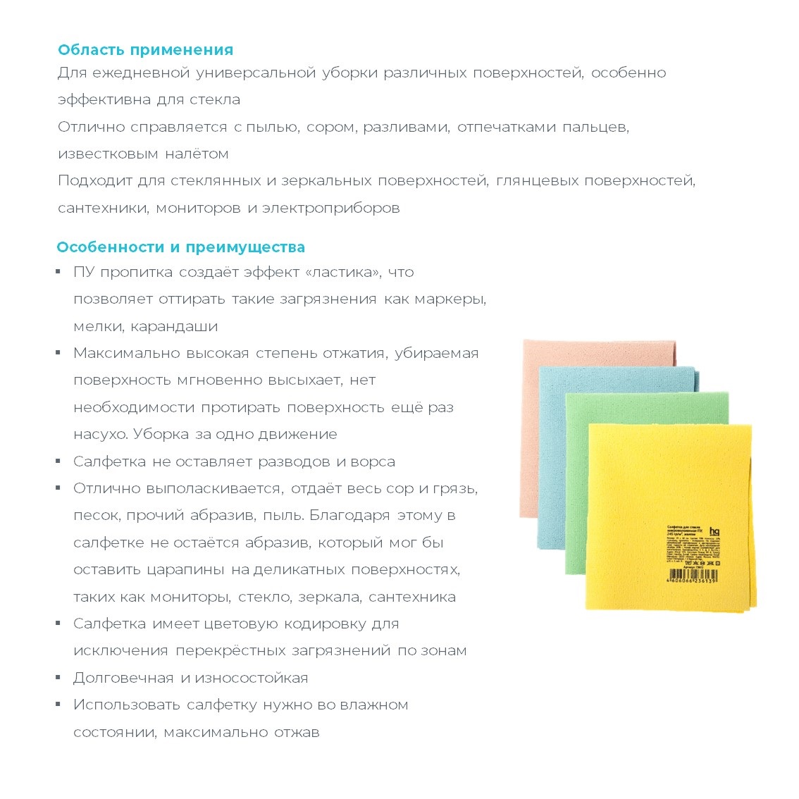 Салфетка HQ Профилайн, 35 х 40 см, для стекла, микроволоконная ПУ, зеленая, 73614 подходит для уборки любых типов поверхности, идеально подойдет для стеклянных и зеркальных поверхностей без использования химии.
