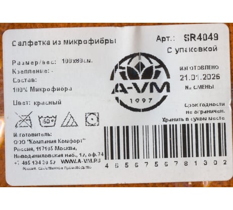 Отзывы о салфетке из микрофибры A-VM 80x100 см, красная SR4049