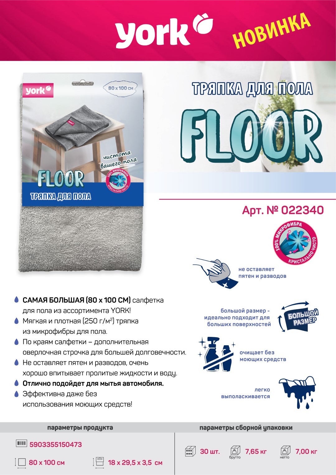 Салфетка из микрофибры для пола YORK 80x100 см 022340