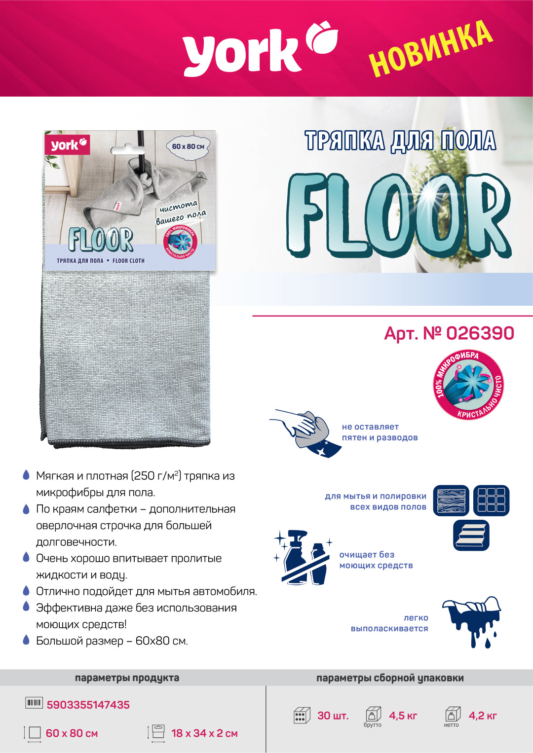 Салфетка из микрофибры для пола YORK 60x80 см 026390