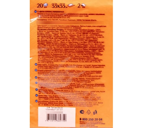 Бумажные салфетки Лилия 33x33, Оранжевый, 2 слоя, 20 листов 759