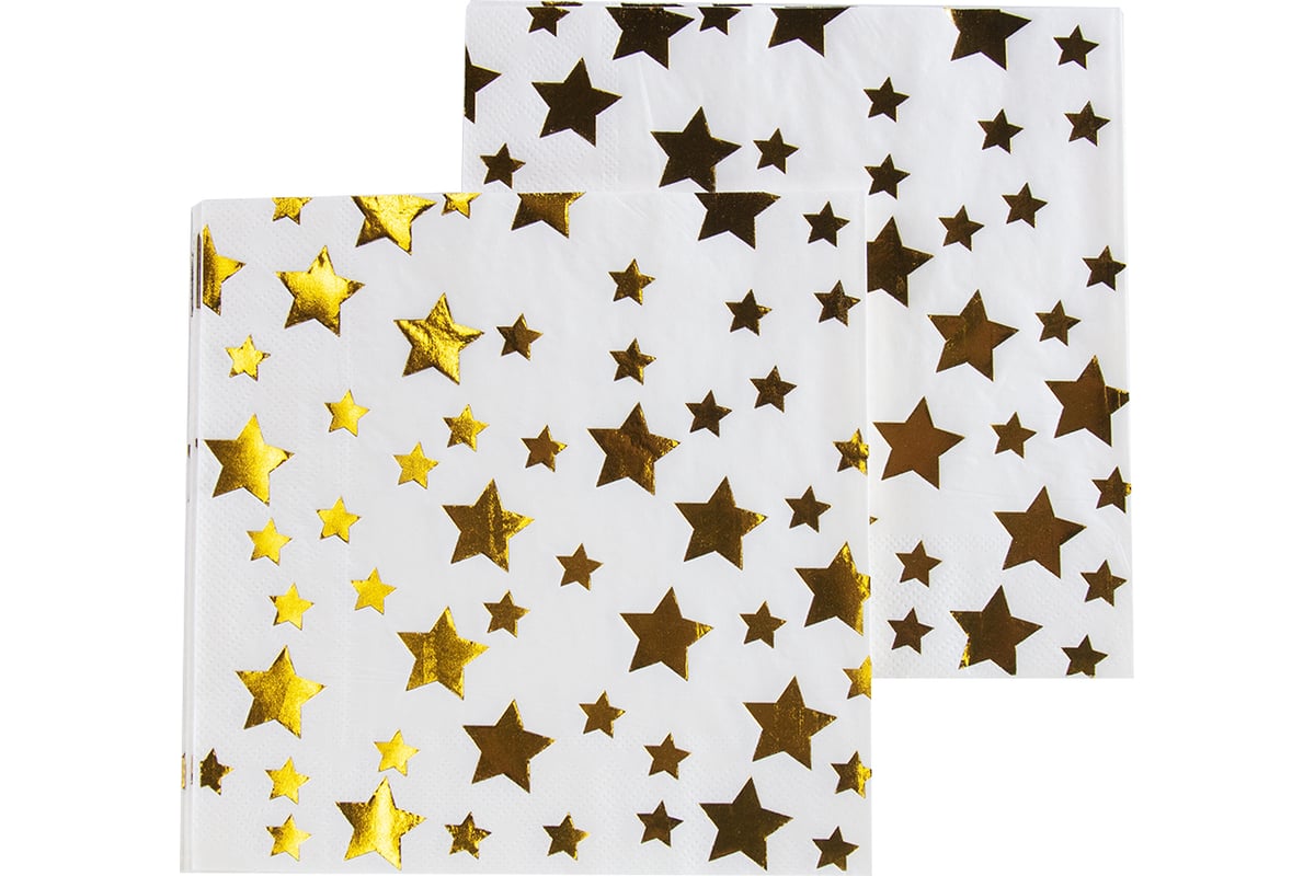 Салфетки Волна веселья Звезды Микс, Белый/Золото, Металлик, 33x33 см, 12 шт. 6231395