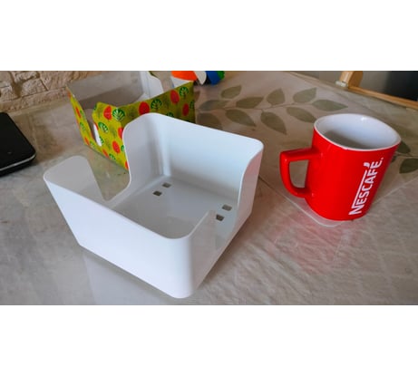 Размер салфетницу больше салфеток на 1-1,5 мм. Выглядит громоздко.