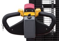 На штабелере установлены кнопка аварийного отключения, позволяющая быстро остановить штабелер в случае возникновения опасной ситуации, и решетчатый экран на мачте, защищающий оператора от возможных травм. Ручка управления имеет интегрированный замок зажигания и полный набор необходимых клавиш управления, в том числе кнопку «черепашьего хода». Функция «черепашьего хода» позволяет ограничивать скорость движения штабелера для лучшего позиционирования.