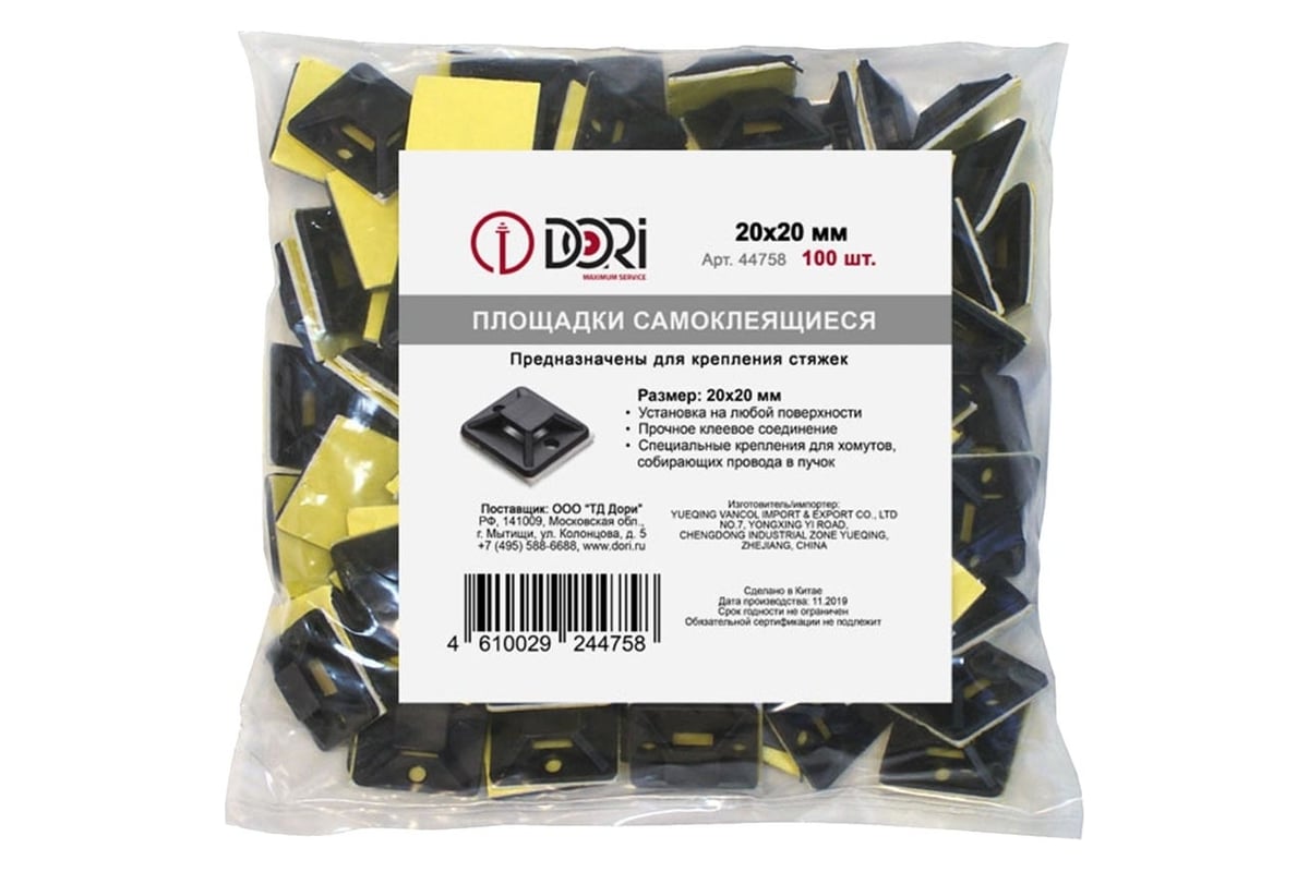 Вопросы и ответы о самоклеящейся площадке для крепления стяжек DORI 20х20 мм черная упаковка 100 шт 44758