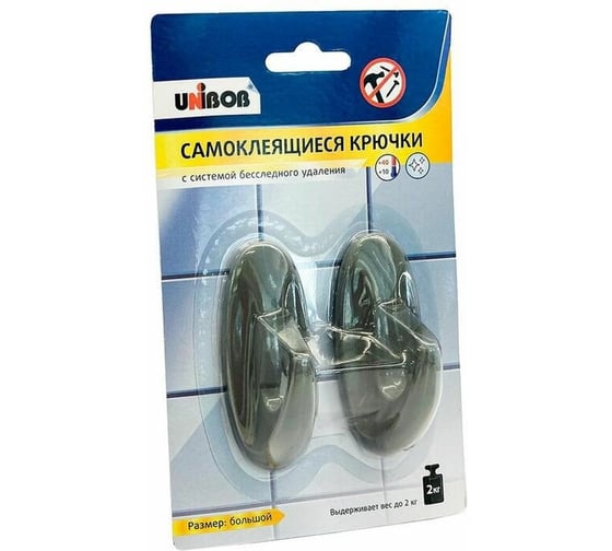 Самоклеящиеся крючки Unibob серые с системой бесследного удаления, 2 шт/упак_ИУ, 96960