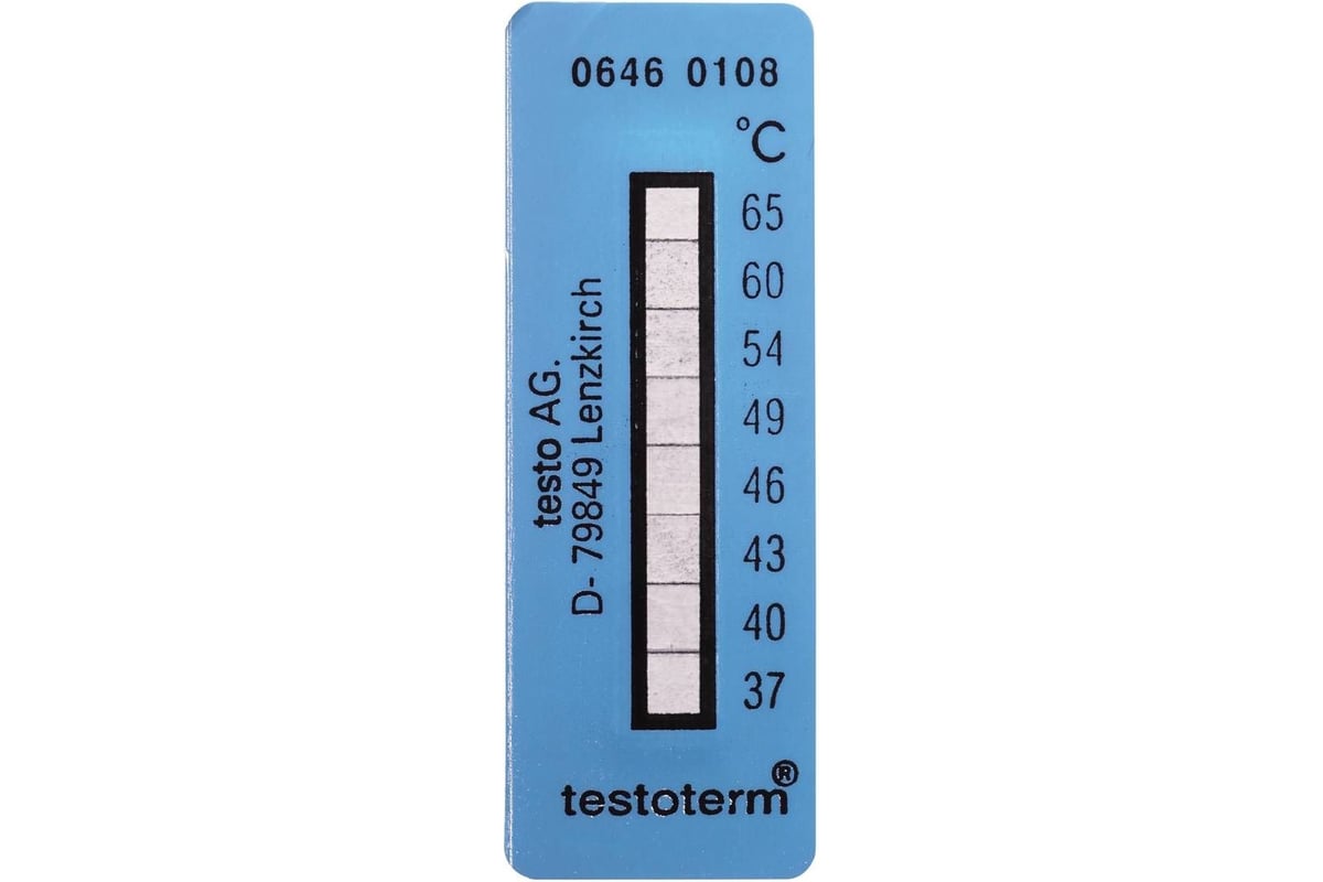 Самоклеящиеся термо-индикаторы Testo 10 шт 37-65 С 0646 0108 - это самоклеящаяся фольга с термочувствительными элементами для контроля температуры и управления нагревом. Подходит для измерений на движущихся объектах, небольших объектах, для долговременного мониторинга. Прибор способен необратимо изменять цвет за две секунды, то есть цвет не возвращается в исходное состояние при изменении температуры поверхности.