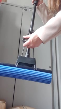 Насадка выжимается за секунду без усилий. Руки сухие, спина прямая. После обычных швабр – это небо и земля! Отжим очень качественный – насадка влажная, но не мокрая. Никаких луж на полу. Советую всем.
