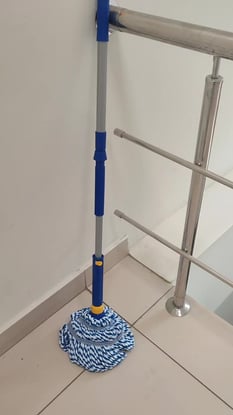Отличная швабра для повседневной уборки. Удобная телескопическая ручка помогает добраться во все отдаленные места. Насадка хорошо впитывает, не оставляет ни ворса ни разводов. Отжим работает исправно, плюс руки всегда чистые и сухие.
