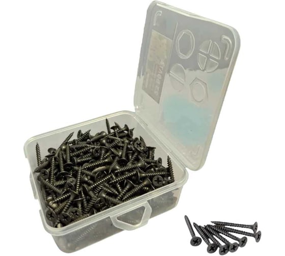 Черный саморез по металлу с мелкой резьбой в органайзере — специализированный крепеж для монтажа гипсокартонных листов (ГКЛ) к металлическим профилям. Благодаря острому кончику и толстому стержню шуруп легко входит в материал, а частый резьбовой шаг обеспечивает надежное сцепление с тонким металлом, предотвращая проскальзывание и срыв резьбы. Это гарантирует прочное и долговечное крепление гипсокартонных конструкций. Потайная головка самореза позволяет легко утопить его в материал, создавая идеально ровную поверхность, готовую для дальнейшей шпаклевки и отделки. Универсальный шлиц PH2 обеспечивает удобство и совместимость с большинством шуруповертов и крестовых отверток. Саморез имеет фосфатированное черное покрытие, которое не только защищает от коррозии, но и обладает превосходной адгезией. Это означает, что шпаклевка, грунтовка или краска лягут на него ровным слоем без отслоений. Крепеж поставляется в удобном органайзере, который обеспечивает порядок на рабочем месте и простоту хранения.