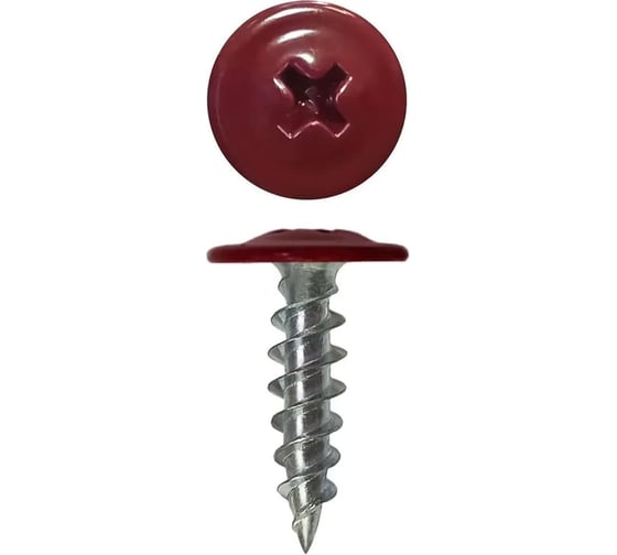 Саморез ARNO INDUSTRIES 4.2х25 мм 100 шт. с прессшайбой острый для крепления листовых материалов, RAL3005 красное покрытие AB3704202535507