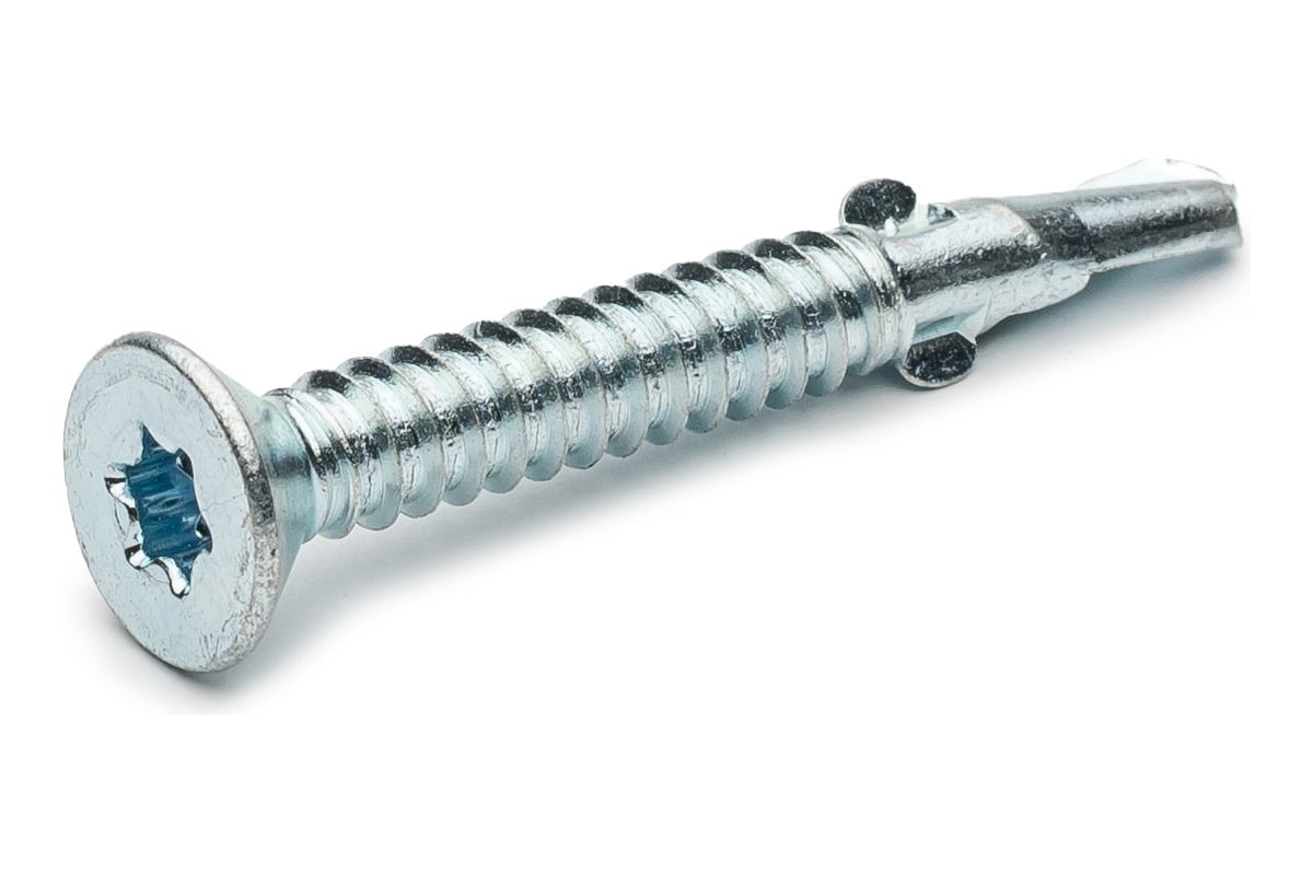 - На острие самореза находится бур с двумя крылышками, создающий технологическое отверстие в древесине