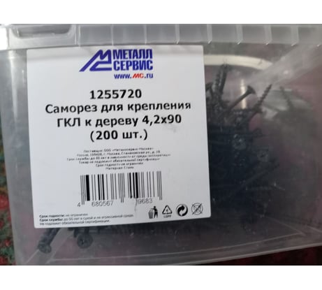 Сопутствующие товары для самореза МЕТАЛЛСЕРВИС 4,2x90 мм, 200 шт. мс 1255720