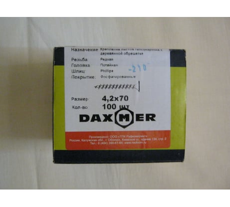 Вопросы и ответы о фосфатированном усиленном саморезе гипсокартон - дереве Daxmer гкд 4,2x70, 100 шт. 00-00453708