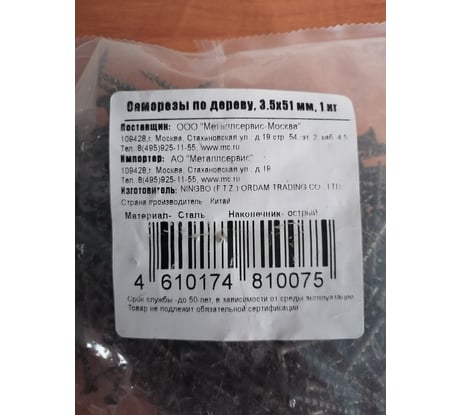 Сопутствующие товары для самореза гкл МЕТАЛЛСЕРВИС 3.5x51 1 кг 1186379