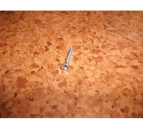 Головка самореза имеет форму, позволяющая скрывать место скрепления на рабочей поверхности. Ее называют потайная головка или просто "потай". Резьба на стержне изделия - шурупная.