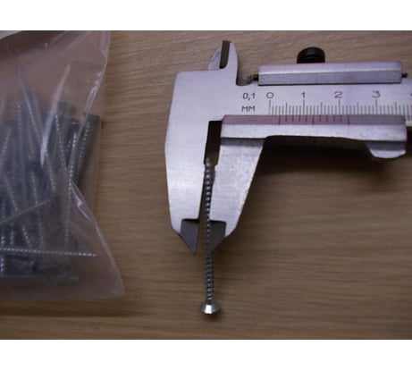 Странные саморезы. Диаметр стержня 2 мм, резьбы - 3,15 (при заявленных 3,5). Шлиц на шляпке не по центру, на биту садится не уверенно