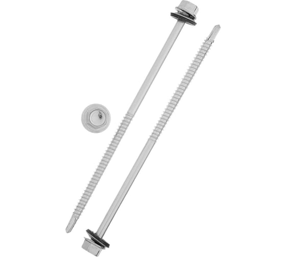 Саморез кровельный — используется для крепления кровельной металлочерепицы, металлического профнастила. Может применяться в качестве крепежа кровельного покрытия к основанию (обрешетке) из деревянного бруса или доски или к каркасу из металлических элементов. Наконечник имеет форму сверла, за счет формы наконечника без затруднений устанавливается с помощью электроинструмента (шуруповерта), при этом нет необходимости в предварительном сверлении отверстий в конструкции. Метиз оснащается упругой прорезиненной шайбой, которая позволяет надежно загерметизировать место установки.Особенности:Материал — сталь, защищенная методом оцинкования, что важно для предотвращения коррозии при воздействии влаги от атмосферных осадков. Защита значительно увеличивает срок службы соединений и кровельного покрытия в целом. Оцинкованный крепеж изготавливается из высокопрочной стали. Эти качества оцинкованных метизов позволяют использовать их для широкого круга работ — от бытового ремонта до строительства и крупной промышленности.