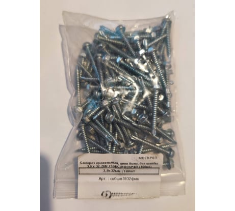 Саморез кровельный КРЕП-КОМП, цинк 8 мкм, без шайбы 3.9x32, DIN 7504К, 100 шт. скбшм3932фмк