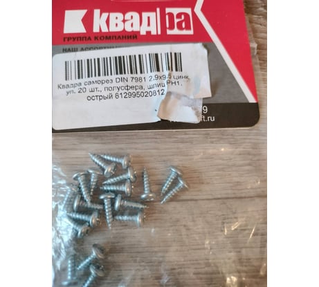 Отзывы о саморезе Квадра DIN 7981 2.9x9.5 цинк, уп. 20 шт., полусфера, шлиц PH1, острый 812995020812