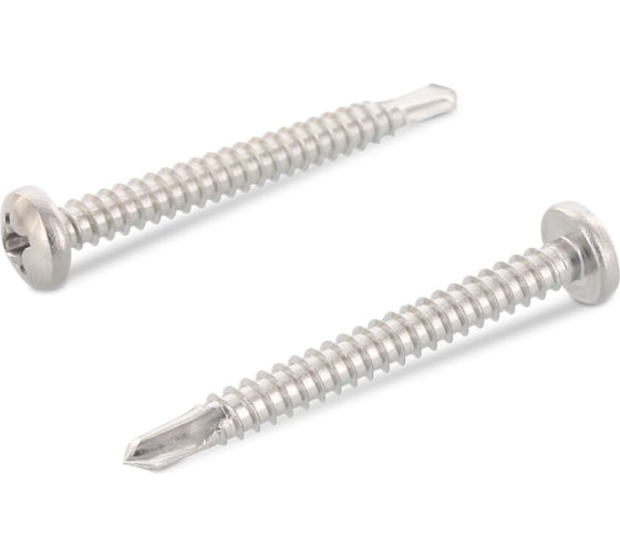 Нержавеющий саморез (шуруп) с полукруглой головкой и крестообразным шлицом PH и наконечником в форме бура используется в машиностроении, строительстве, производстве металлоконструкций и других промышленных отраслях.