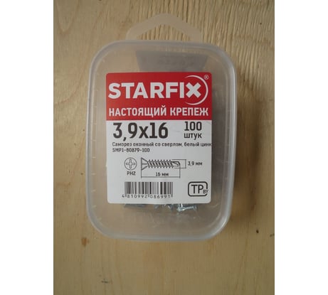 Саморез оконный STARFIX 3.9x16 мм, белый цинк, со сверлом, 100 шт. в пласт. конт. SMP1-80879-100