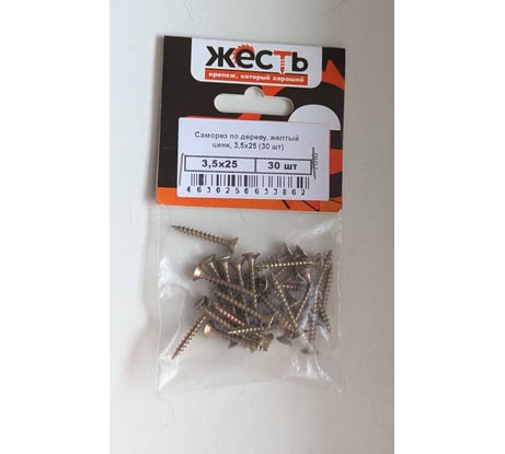 Саморез по дереву ЖЕСТЬ желтый цинк, 3,5x25 мм, 30 шт., европодвес УТ-00002818