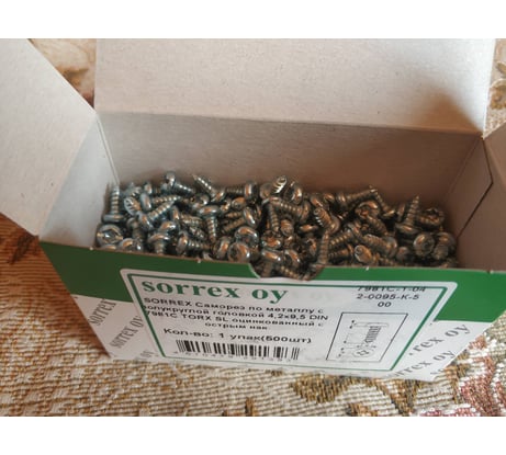 Саморез по металлу SORREX по металлу с полукруглой головкой 4,2x9,5 DIN 7981С TORX SL оцинкованный с острым наконечником 500 штук 7981С-1-042-0095-К-500