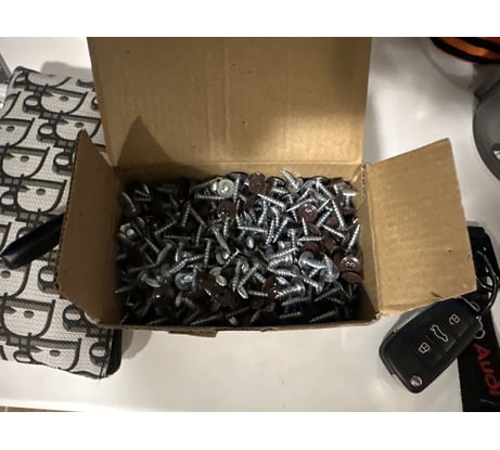 Каробка не опечатана (продавец напиши адрес я вышлю рулон скотча , надолго хватит ), саморезов в каробке меньше на 7 штук .