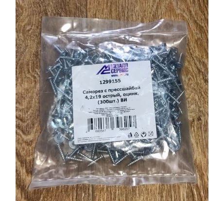 Саморез с прессшайбой 4,2x19 острый, цинк, 300 шт. ВИ 1299155