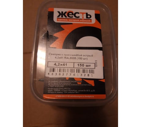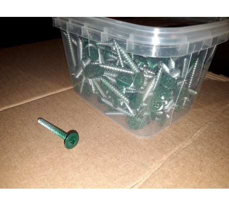 Саморез с прессшайбой ЖЕСТЬ острый, 4,2x41 мм, RAL6005, 150 шт., контейнер 500 мл УТ-00010141