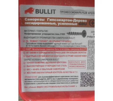 Отзывы об усиленных саморезах ШСГД Bullit 3,8х51 (200 шт.) КР.194003