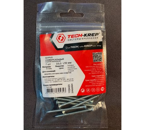 Вопросы и ответы о саморезе Tech-Krep 3,5х50 7 шт. ШУц пот. гол. пакет 102423