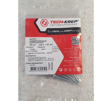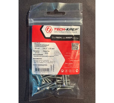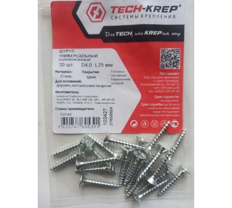 Саморез Tech-Krep/Zitar ШУц 4,0х25 потайная головка 20 шт, пакет 102427 На страницу товара35 ₽