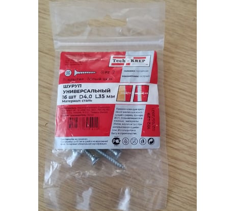 Саморез Tech-Krep/Zitar ШУц 4,0х35 потайная головка 16 шт, пакет 102429 На страницу товара30 ₽