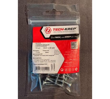 Отзывы о саморезе Tech-Krep/Zitar ШУце 4,5х30 потайная головка 14 шт, пакет 102437