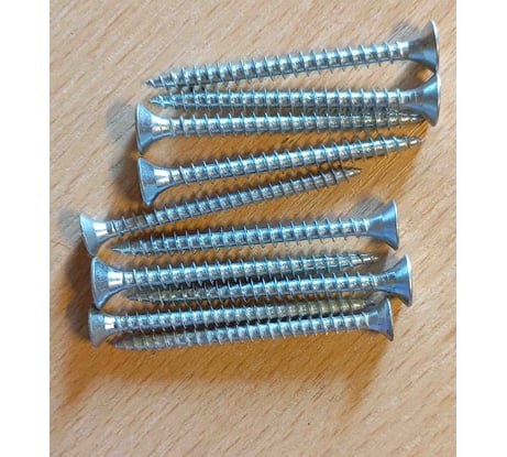 Количество оцинкованных саморезов соответствует заявленным 10 штукам. В среднем, каждый саморез весит 2.94 грамма. Длина шурупов скачет от 49.4 до 49.8 мм. Фактический диаметр резьбы лежит в диапазоне 3.9-4.2 мм. Диаметр шляпки от 8.3 до 8.9 мм.