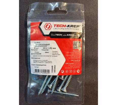 Вопросы и ответы о саморезе Tech-Krep 5,0х50 8 шт. ШУц пот. гол. пакет 102448