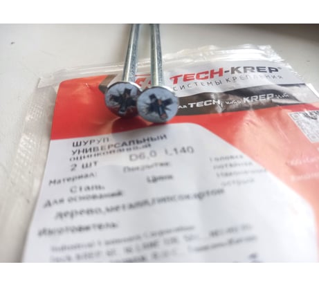 Отзывы о саморезе Tech-Krep/Zitar ШУце 6,0х140 потайная головка 2 шт, пакет 102464