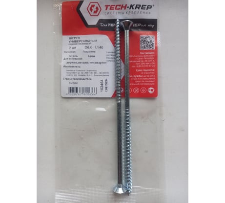 Саморез Tech-Krep/Zitar ШУц 6,0х140 потайная головка 2 шт, пакет 102464 На страницу товара32 ₽