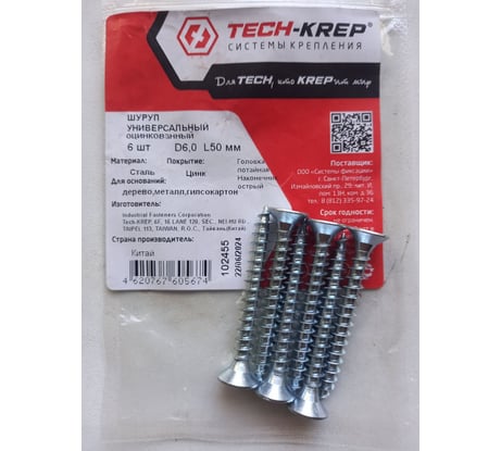 Вопросы и ответы о саморезе Tech-Krep 6,0х50 6 шт. ШУц пот. гол. пакет 102455