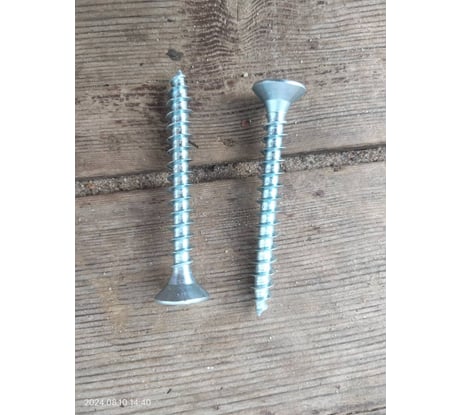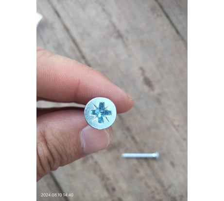 Недорогие саморезы среднего качества. Качество соответствует стоимости. Сделаны аккуратно. Гладкие, ровные, без заусениц, достаточно прочные, острые, бракованных нет. Удобная упаковка. Диаметр – 5,8мм, диаметр тела самореза – 3,4мм, длина – 49,5мм, диаметр шляпки – 11,4мм.
