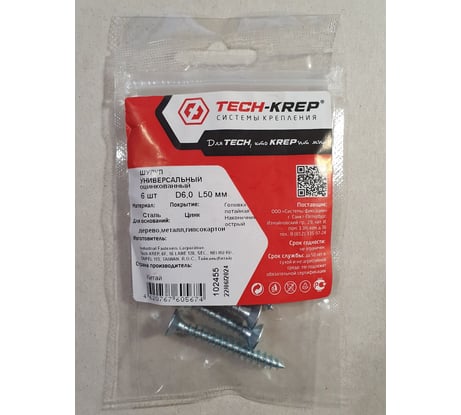 Саморез Tech-Krep/Zitar ШУц 6,0х50 потайная головка 6 шт, пакет 102455 На страницу товара34 ₽