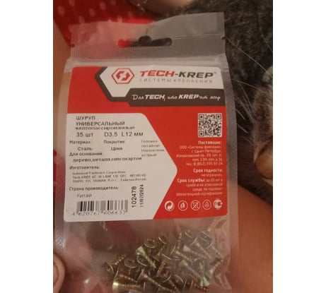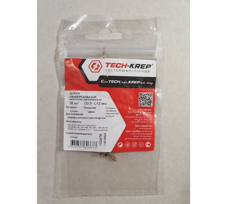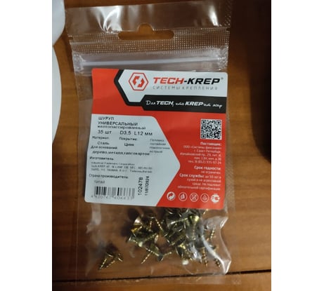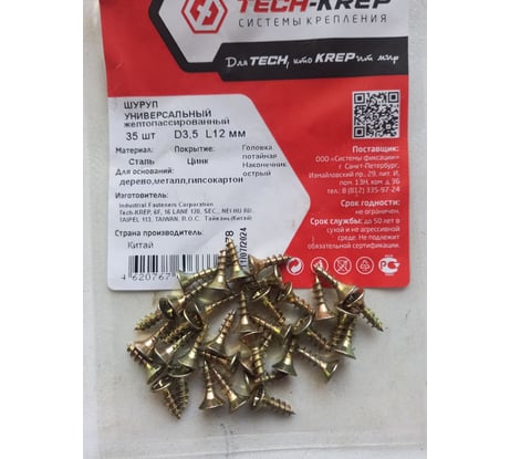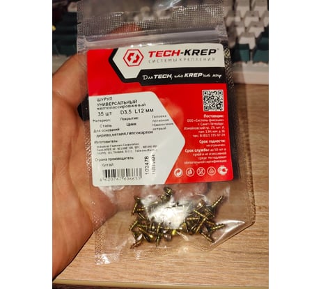Отзывы о саморезе Tech-Krep/Zitar ШУже 3,5х12 потайная головка 35 шт, пакет 102478