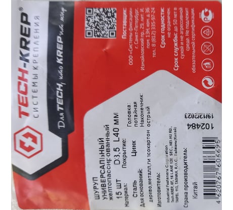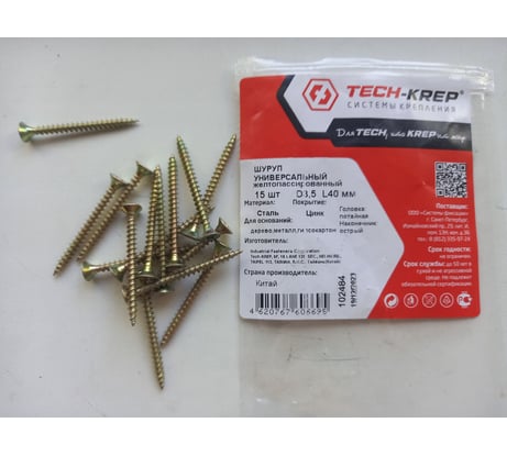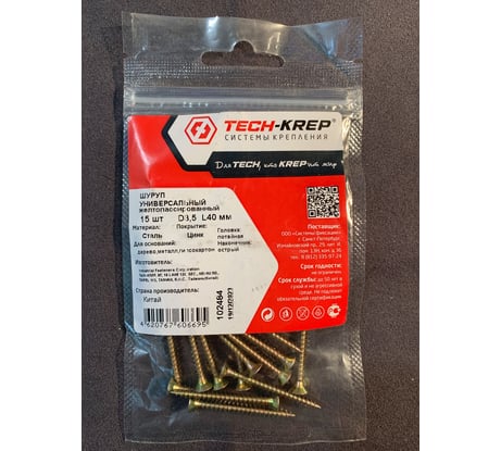 Отзывы о саморезе Tech-Krep/Zitar ШУже 3,5х40 потайная головка 15 шт, пакет 102484