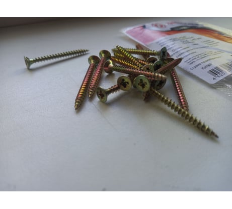 Хороший, удобного размера саморез. Не ржавеет во влажных условиях. Не срубается шуруповёртом так быстро, как другие.