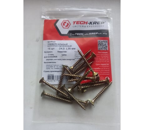 Отзывы о саморезе Tech-Krep/Zitar ШУже 4,0х35 потайная головка 16 шт, пакет 102492