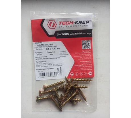 Вопросы и ответы о саморезе Tech-Krep 4,5х30 14 шт. ШУж пот. гол. пакет 102500