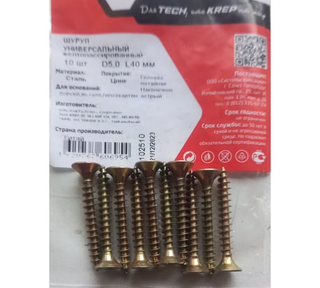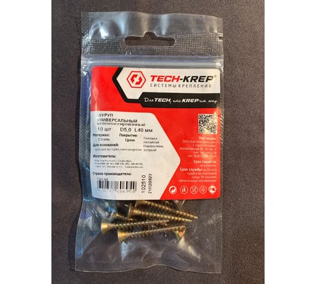 Отзывы о саморезе Tech-Krep/Zitar ШУже 5,0х40 потайная головка 10 шт, пакет 102510